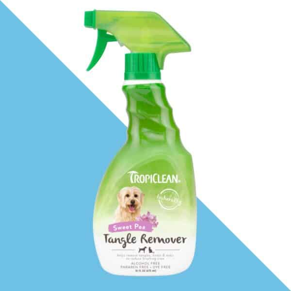 תרסיס ה-Sweet Pea מבית TropiClean מיועד להסרת קשרים, פרוות סבוכה ומוקדים קשים לסירוק – תוך שמירה על בריאות וברק הפרווה, ללא חומרים מזיקים.