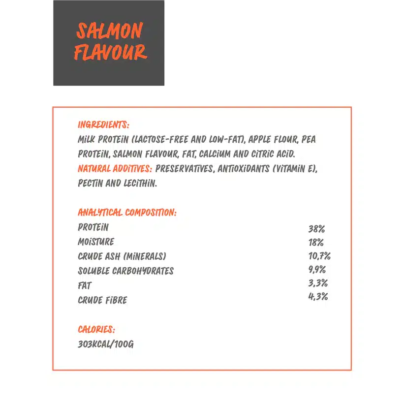 רכיבים: חלבון חלב, קמח תפוחים, חלבון אפונה, חמאת בוטנים, שומן חזיר, סידן.