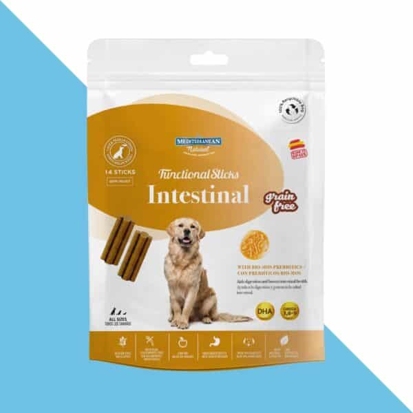 הדרך הטבעית לשמור על מערכת העיכול של הכלב – חטיף אינטסטינל מבית Mediterranean Natural, פותח במיוחד לחיזוק המעיים, תמיכה בעיכול תקין ואיזון פלורת המעיים, תוך שמירה על טעם עשיר ומרקם לעיס שהכלבים אוהבים.