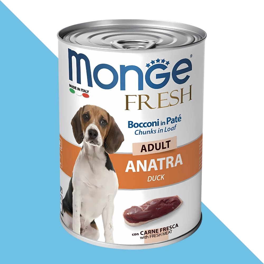 מונג' פרש פטה עם נתחי ברווז לכלב בוגר – 400 גרם | Monge Fresh Duck for Adult Dogs