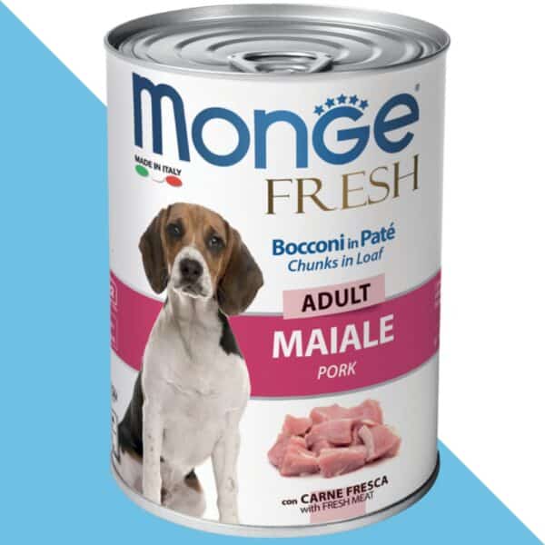 מונג' פרש שימור פטה עם נתחי בשר חזיר לכלב בוגר 400 גרם