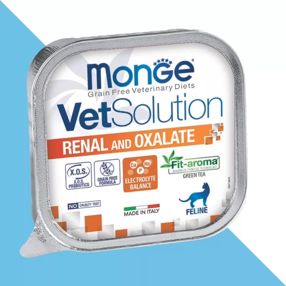 מזון רפואי רטוב מבית Monge, המיועד לחתולים הסובלים מבעיות כליות ואבני אוקסלט. מתכון מיוחד עם תכולת חלבון מבוקרת, רמות זרחן מופחתות ורכיבים ייחודיים המסייעים בהפחתת העומס על הכליות ותמיכה בבריאות מערכת השתן.