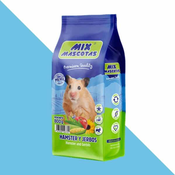 Mix Mascotas Hamster y Jerbos הוא מזון יבש פרימיום לאוגרים וגרבילים, עשיר ברכיבים טבעיים, סיבים תזונתיים וויטמינים החיוניים להתפתחות בריאה, שיניים חזקות ופרווה מבריקה 🥬🌽