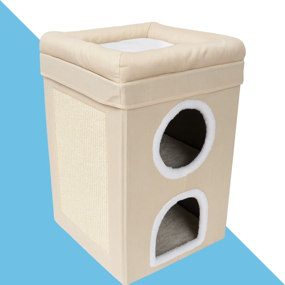 מקום מושלם לחתולים שאוהבים לשלב בין מנוחה למשחק! המתקן כולל שתי קומות מרופדות ונעימות לשינה והתפנקות, לצד משטח גירוד איכותי שישמור על הטפרים של החתול ויחסוך מהרהיטים שלכם את השריטות.
