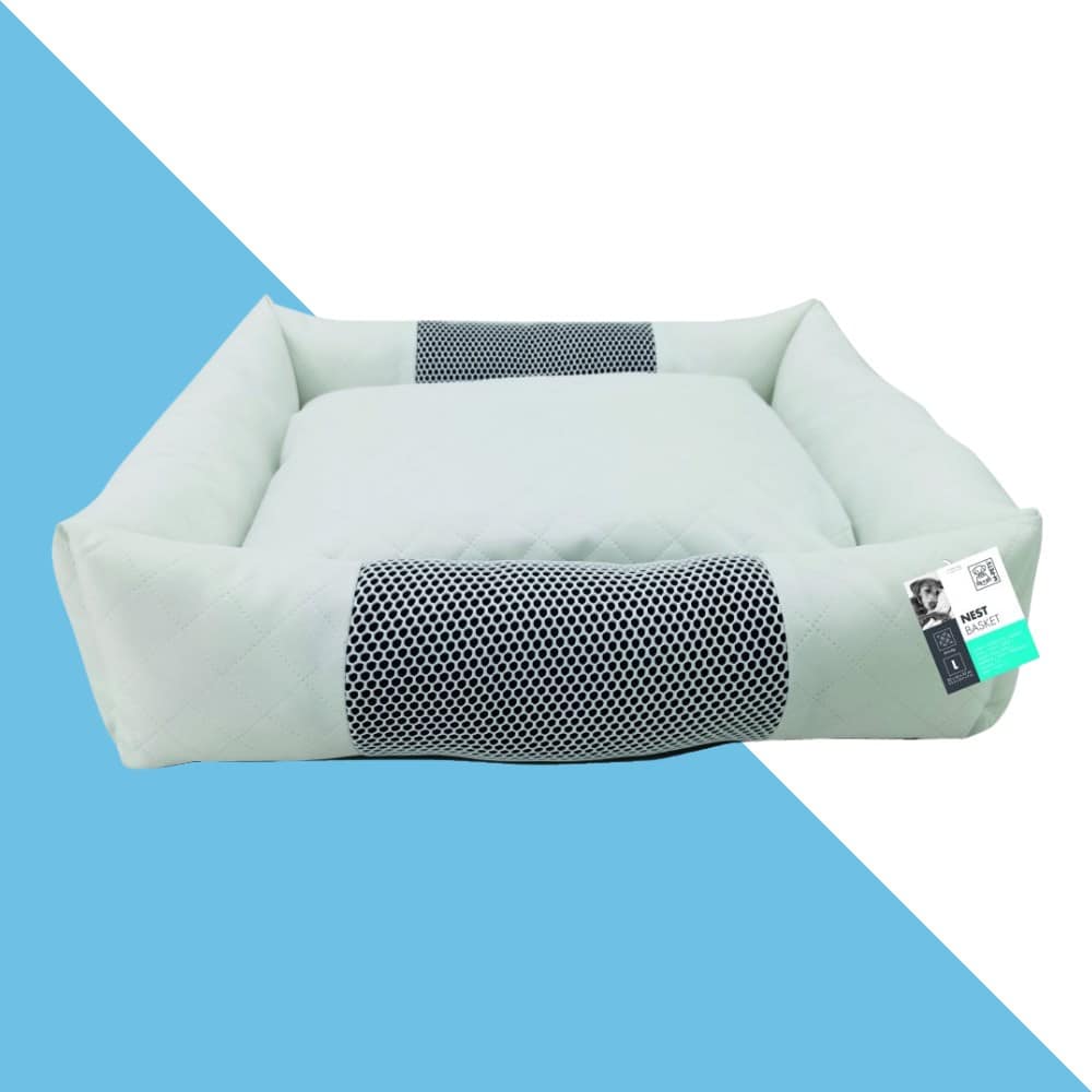 מבנה ה"סלסלה" (Nest) מתאפיין בדפנות זקופות ויציבות המעניקות לכלב תחושת מוגנות וביטחון, בעוד הכרית הפנימית הרכה מבטיחה שינה עמוקה ונעימה. הרשתות הצדדיות אינן רק ליופי – הן מסייעות בסירקולציה של אוויר ושמירה על רעננות המיטה.