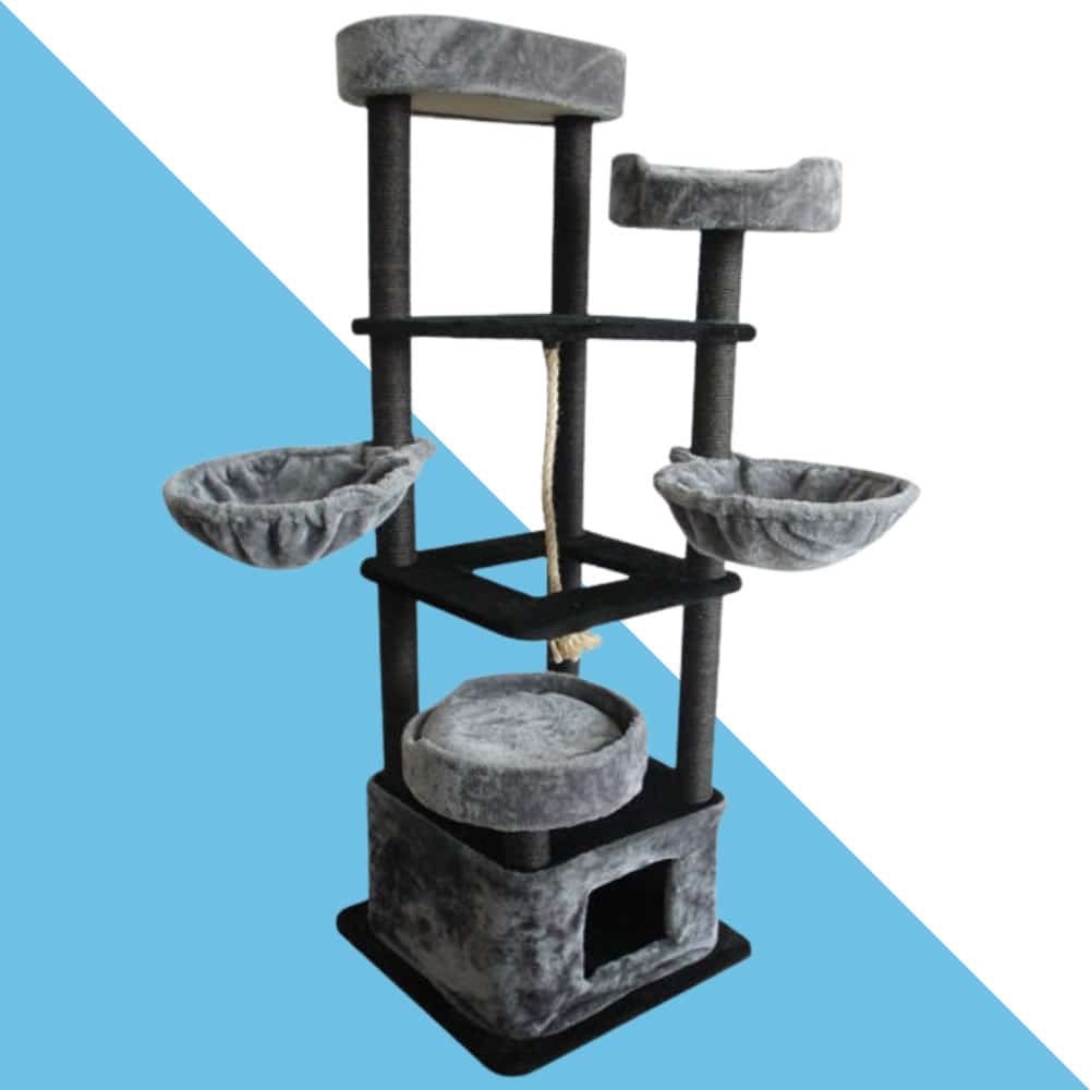 הפכו את הסלון שלכם לפארק שעשועים חלומי עבור החתול שלכם! עץ החתולים דגם “אייפל” (UP162) מציע שילוב מנצח של גובה מרשים, יציבות יוצאת דופן ועיצוב אלגנטי בשחור ואפור שמשתלב נפלא בכל בית מודרני. עם מגוון רחב של מפלסים, ערסלים מפנקים, עמודי גירוד ומקומות מסתור, המתקן הזה מספק לחתול את כל מה שהוא צריך כדי לפרוק אנרגיה, לשחק, לטפס ולנוח בנוחות מקסימלית.