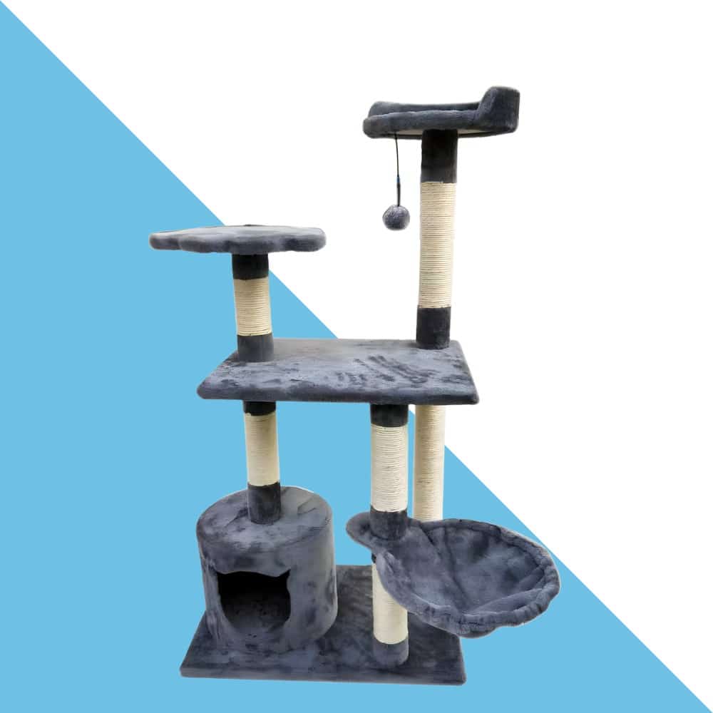 מתקן גירוד ומשחקים קומפקטי לחתולים דגם “קאסה” (UP114) – גובה 114 ס”מ (צבע אפור)