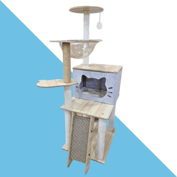העניקו לחתול שלכם מתקן יוקרתי, עמיד ומעוצב שמשלב חומרי גלם איכותיים, מקום מרווח למנוחה, עמדות גירוד ואלמנטים חדשניים למשחק. עיצוב עץ טבעי עם שילוב אפור וקרם מעניק לחלל מראה מודרני ואסתטי המשתלב בצורה מושלמת בביתכם.