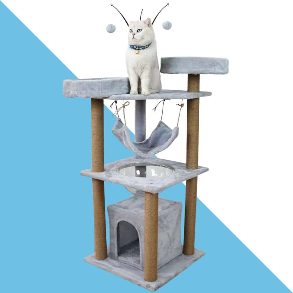 • עמודי גירוד חזקים – עשויים מסיסל טבעי לשמירה על ציפורני החתול ולמניעת נזק לרהיטים.