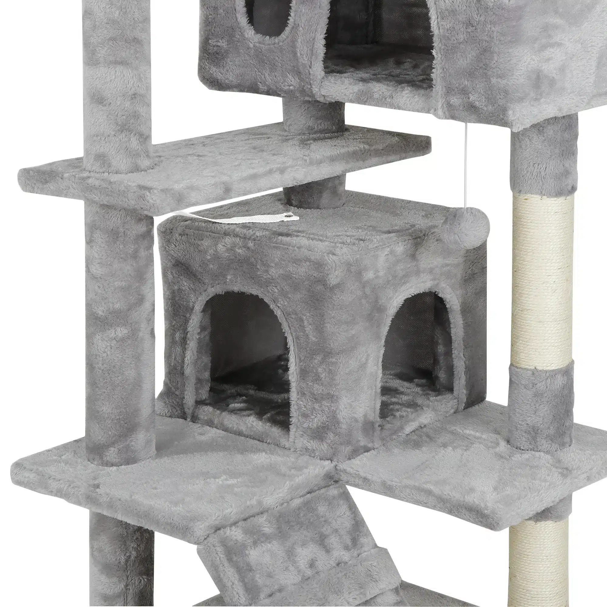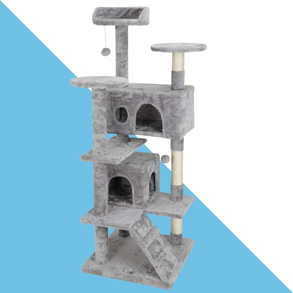 מתקן גירוד אפור בהיר עם סולם ו-2 בתים 🐾