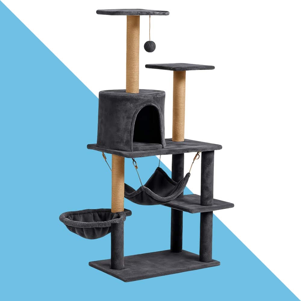 מתקן רחב ויציב לחתולים, בגובה כ־130 ס"מ, המשלב שלוש קומות משחק, בית מסתור, ערסל נעים ומקום רביצה פתוח. מתאים גם לחתולים גדולים יחסית, מספק מרחב לטיפוס, גירוד, מנוחה ומשחק במקום אחד.
