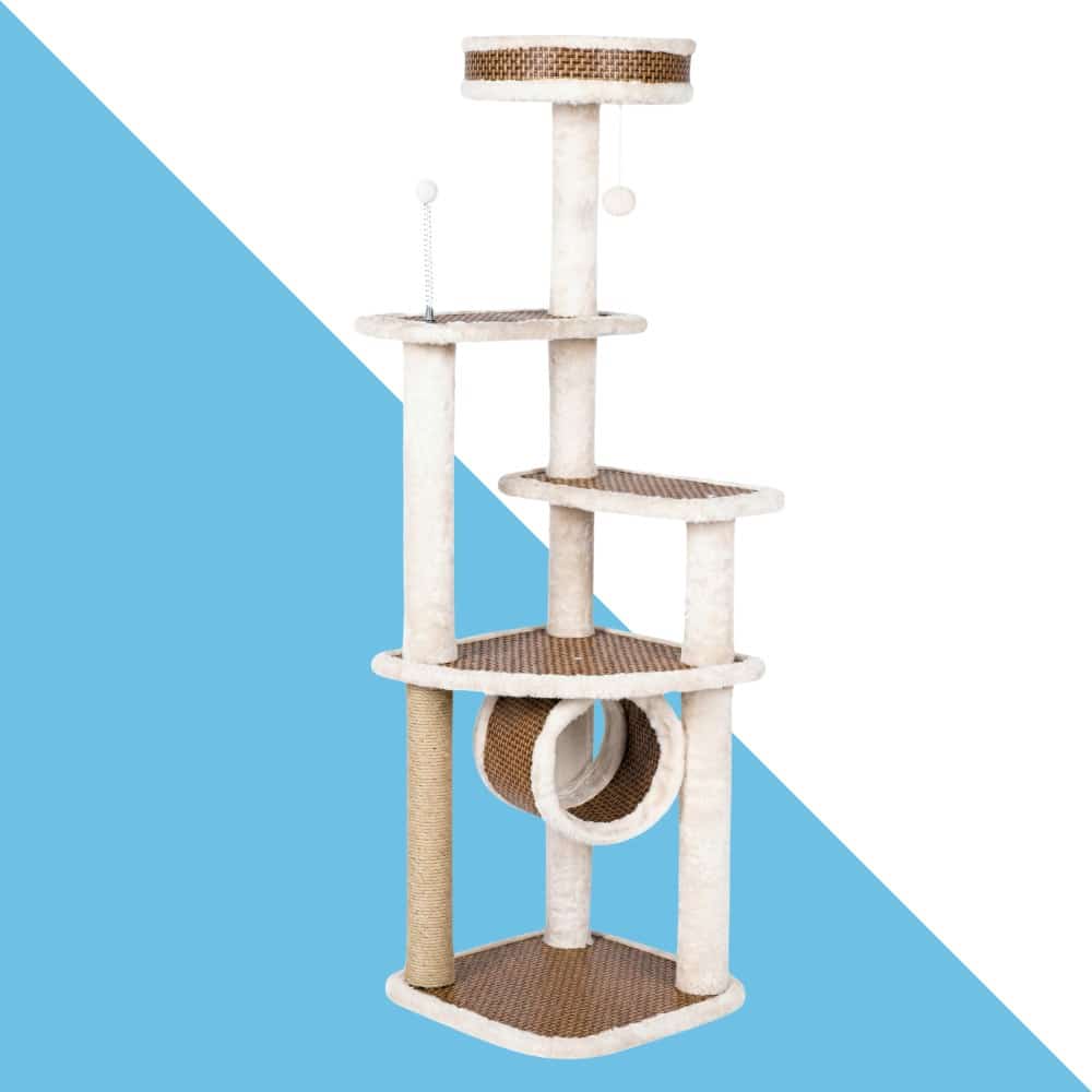 מתקן זה, המתנשא לגובה של 128 ס"מ, מציע לחתול שלכם 4 מפלסים שונים לטיפוס, תצפית ומנוחה. השילוב האלגנטי של צבעי לבן וחום משתלב נהדר בכל סלון, והמבנה הצר (40X40) מבטיח שהוא לא יתפוס מקום רב בבית.