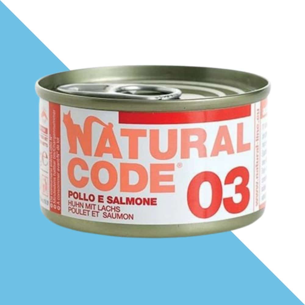נטורל קוד 03 שימורי סופר פרימיום לחתול- עוף וסלמון 85 גרם Natural Code