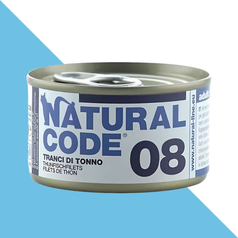 נטורל קוד 08 שימורי סופר פרימיום לחתול- נתחי טונה 85 גרם Natural Code