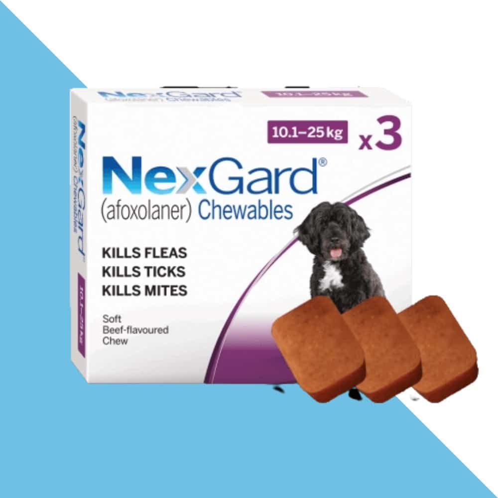 NexGard הוא טיפול חדשני וטעים במיוחד בצורה של 3 טבליות לעיסה, אשר מציע הגנה מקיפה נגד פרעושים, קרציות ואקריות עור. מיועד לכלבים בינונים במשקל 10-25 ק"ג, הטיפול מספק תוצאות מהירות ומשפיע לאורך חודש שלם – הכל בטבליה אחת בלבד בטעם בשר, שהכלבים פשוט אוהבים.
