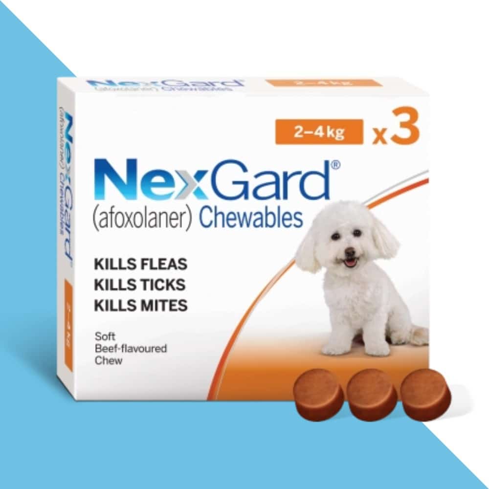 NexGard הוא טיפול חדשני וטעים במיוחד בצורה של 3 טבליות לעיסה, אשר מציע הגנה מקיפה נגד פרעושים, קרציות ואקריות עור. מיועד לכלבים קטנים במשקל 2–4 ק"ג, הטיפול מספק תוצאות מהירות ומשפיע לאורך חודש שלם – הכל בטבליה אחת בלבד בטעם בשר, שהכלבים פשוט אוהבים.