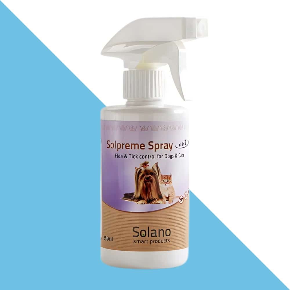 Solano Solpreme Spray הוא תרסיס איכותי ויעיל להדברת פרעושים וקרציות אצל כלבים וחתולים. מתאים לשימוש ישיר על הפרווה, פועל במהירות, מעניק הגנה מתמשכת ומסייע במניעת נגיעות חוזרת של טפילים.