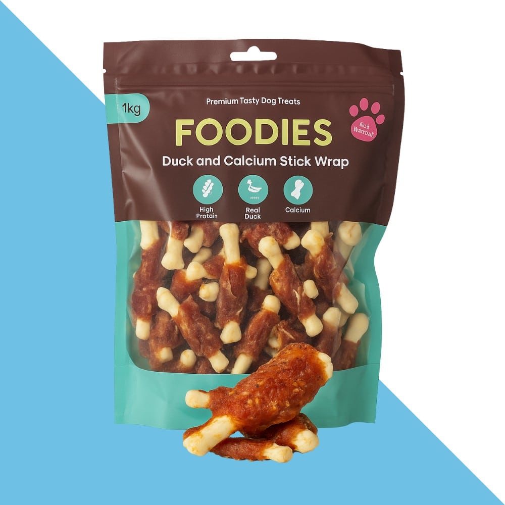 FOODIES עצמות סידן מצופות בשר ברווז – חטיף פרמיום לכלבים, 1 ק"ג.