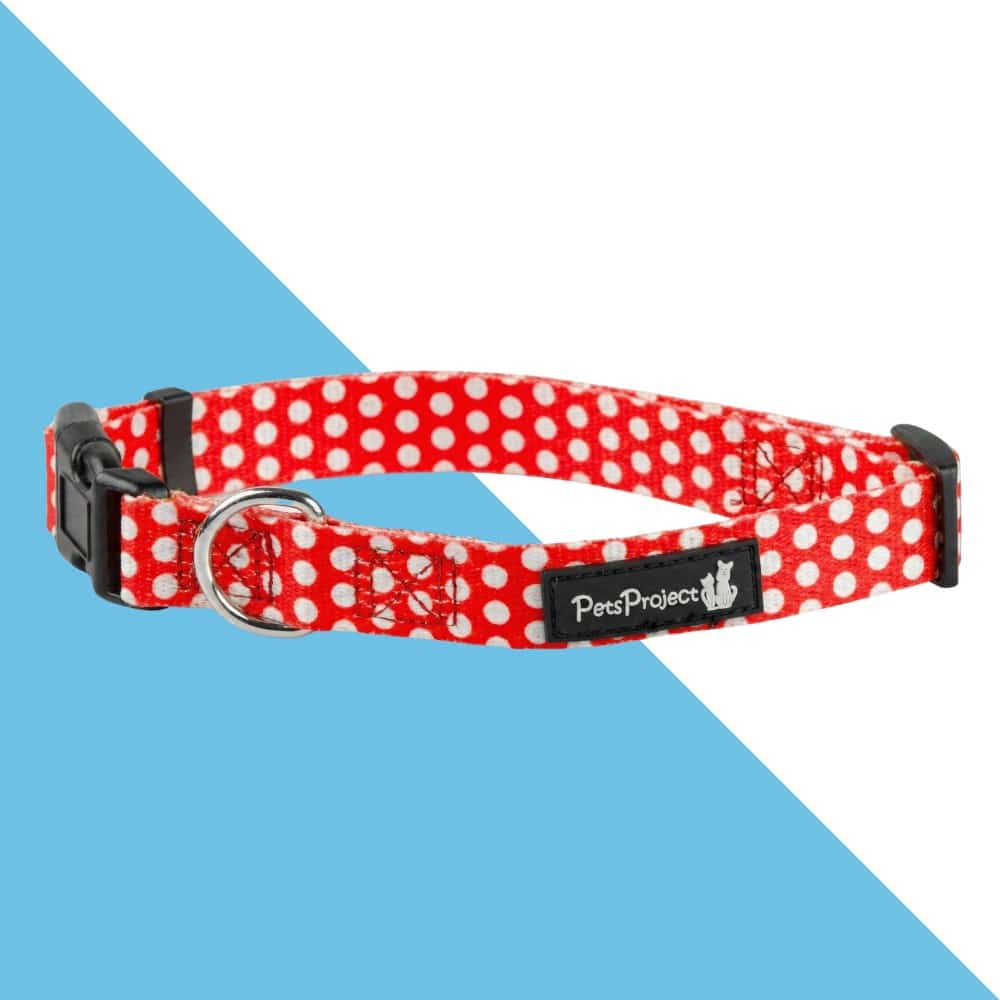 הכניסו שמחה וצבע לכל טיול עם הקולר המנוקד והשובב של המותג Pets Project. דגם זה מגיע בעיצוב קלאסי ומתוק של בד אדום עם נקודות לבנות, המעניק לכלב מראה אופנתי, בולט ומלא חן.