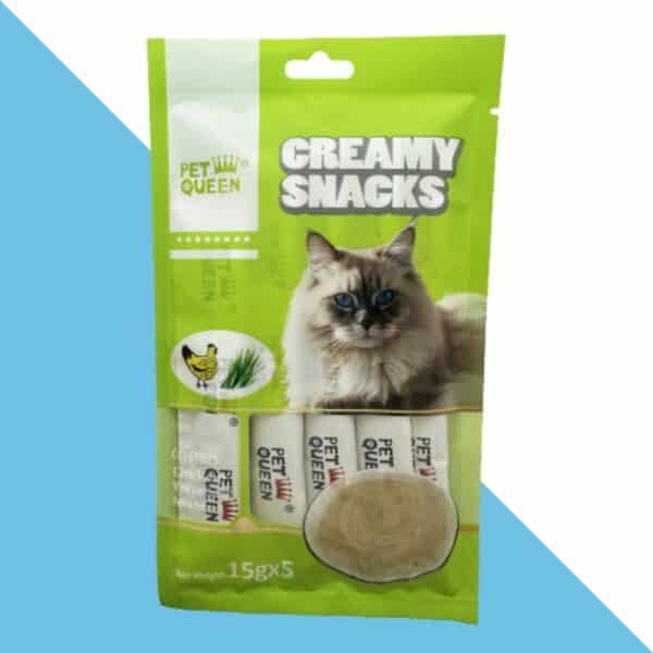 Pet Queen Creamy Snacks Chicken & Wheat Grass – חטיף "שלוקים" בטעם עוף ועשבים (75 גרם)