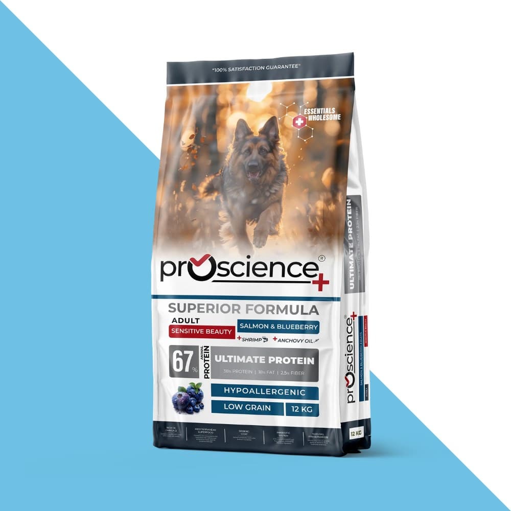 ProScience — מזון יבש היפואלרגני לכלב בוגר, 12 ק״ג, בטעם סלמון ואוכמניות 🍣🫐