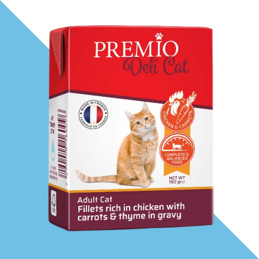 פרמיו דליקט (Premio Deli Cat) – נתחי עוף עם גזר וטימין ברוטב לחתול בוגר (190 גרם)