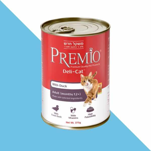 פרמיו מעדן שימור פטה לחתול בוגר- ברווז 375 גרם