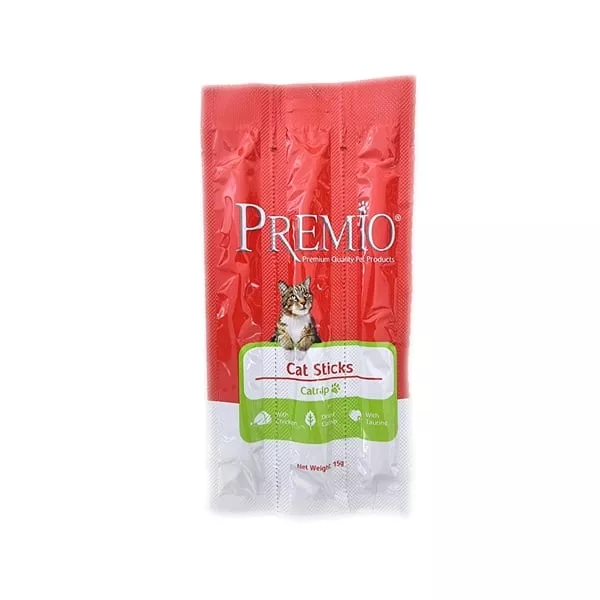 premio sticks מועשר בוויטמינים ובטעם שחתולים אוהבים, בטעם קטניפ.