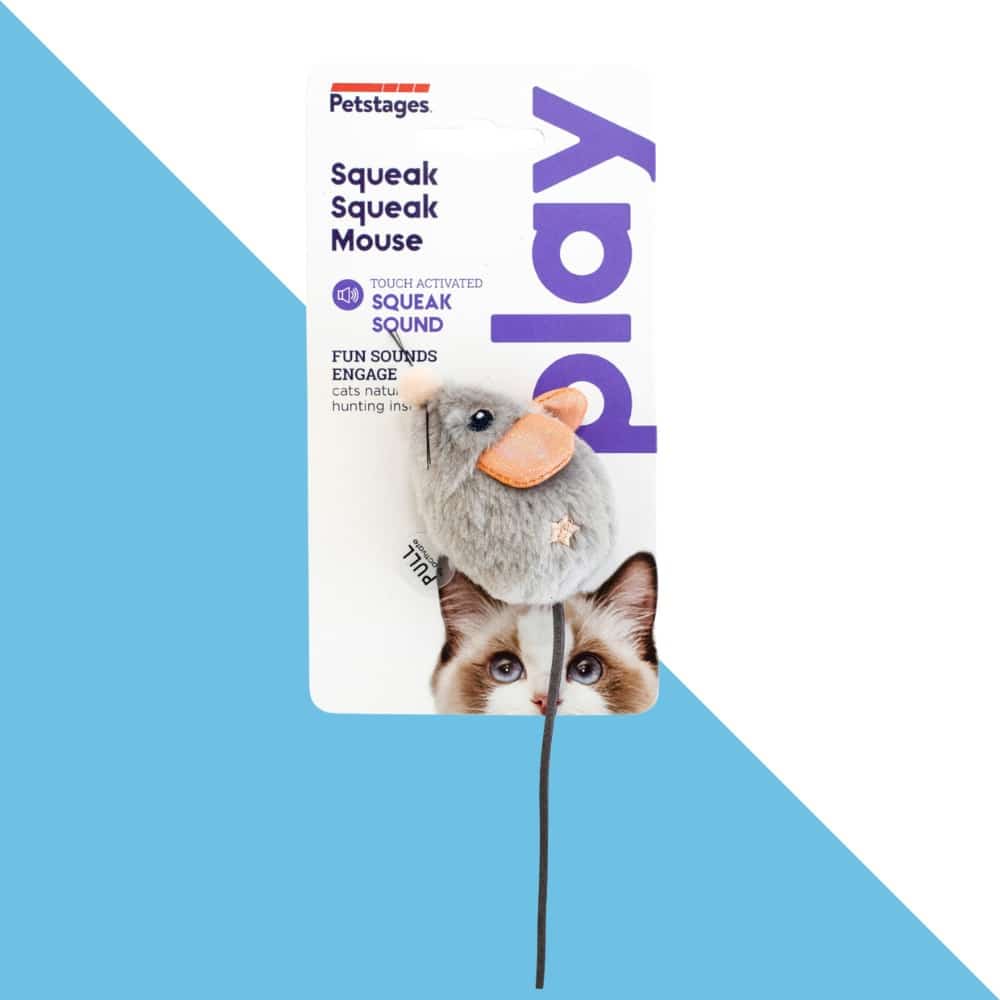ה־Squeak Squeak Mouse של Petstages הוא עכבר קטיפה רך שמעודד אינטראקציה טבעית באמצעות צליל מצייץ בעת מגע, המדמה עכבר אמיתי ומעורר את יצר הציד של החתול – תוך כדי הנאה, משחק ופעילות גופנית.