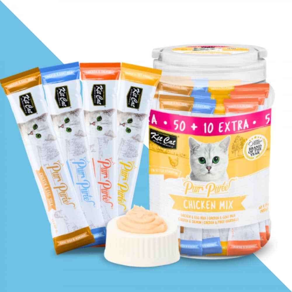 Kit Cat Purr Puree Chicken Mix Tub – שלוקים לחתול בטעם עוף מיקס (צנצנת 60 יחידות)