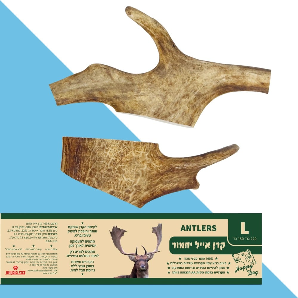 קרן אייל יחמור 100% טבעית לכלב – מידה L (220-150 גרם)