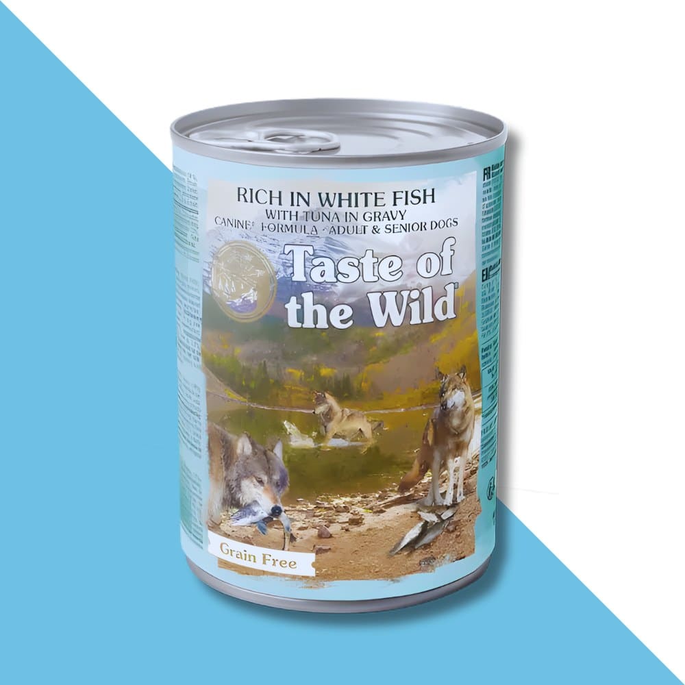 שימורים לכלבים טייסט אוף דה וויילד (Taste of the Wild) – דג לבן וחתיכות טונה ברוטב (390 גרם)