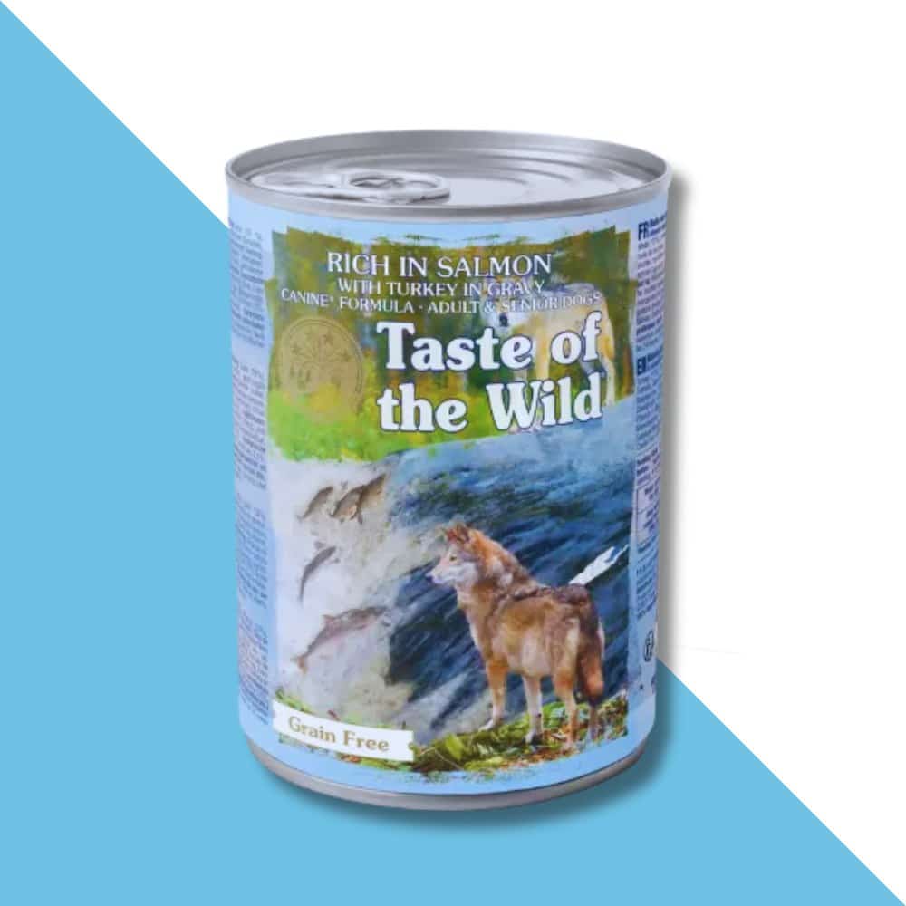 שימורים לכלבים טייסט אוף דה וויילד (Taste of the Wild) – סלמון עסיסי וחתיכות הודו ברוטב (390 גרם)