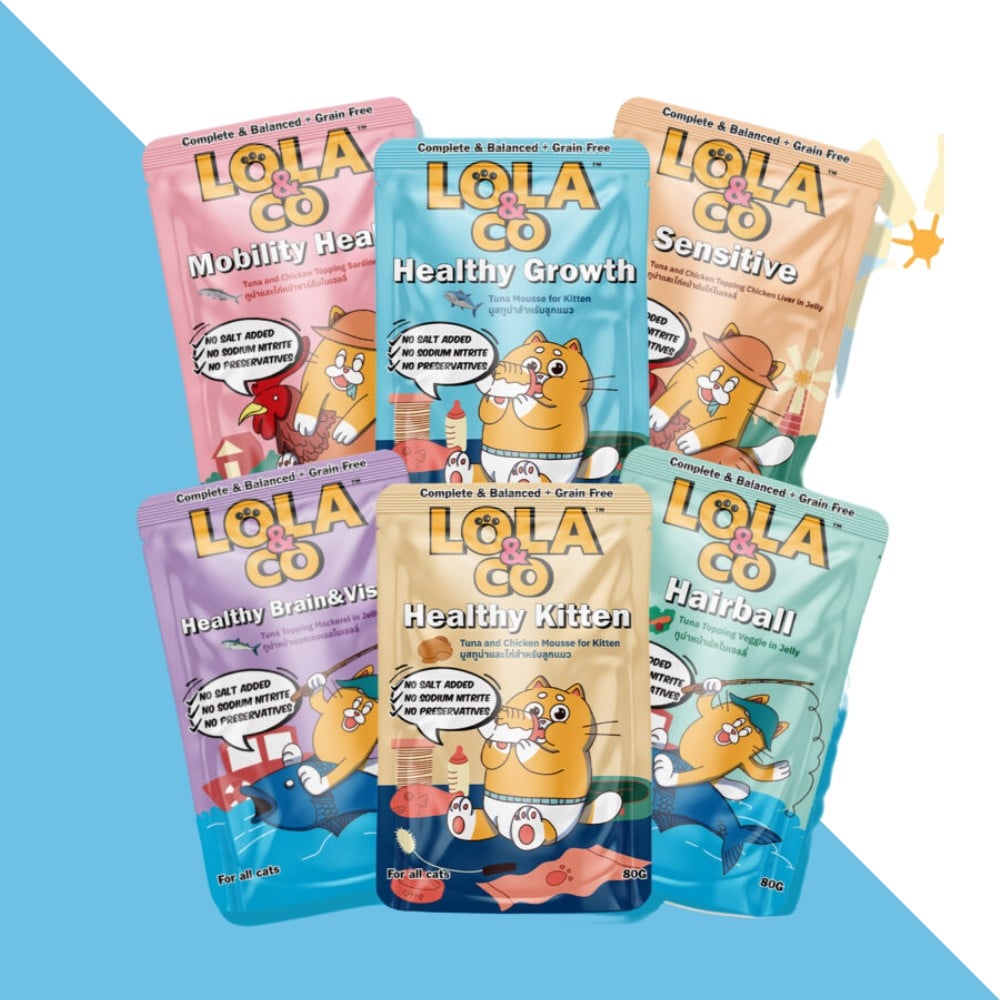 סדרת פאוצ'ים איכותיים מבית Lola & Co, מותאמים במיוחד לצרכים התזונתיים של חתולים בכל שלבי החיים – גורים, בוגרים וחתולים רגישים.
