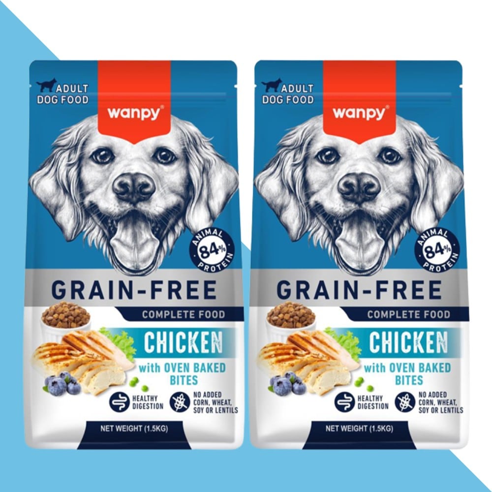 וונפי עוף מזון יבש לכלב בוגר מכל גזע ללא דגנים | 12 ק"ג Wanpy