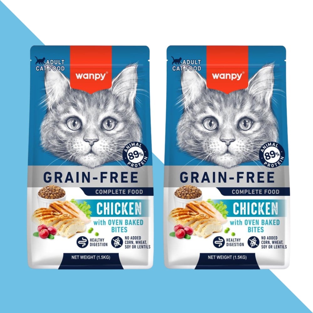 2 שקי וונפי עוף 1.5 ק"ג מזון יבש לחתול בוגר ללא דגנים | 3 ק"ג Wanpy