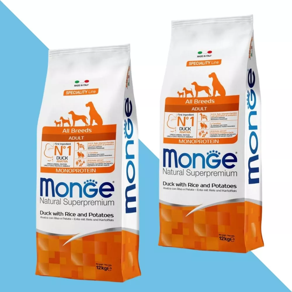 מזון סופר פרימיום יבש מלא של מונג׳ לכלבים בוגרים מכל הגזעים – עשיר בבשר ברווז