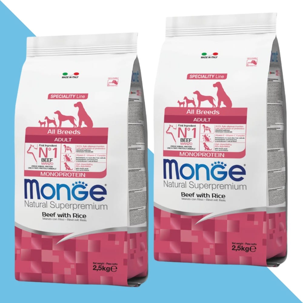 מונג’ Monge Beef & Rice – מזון לכלב בוגר מכל הגזעים 🐶🥩