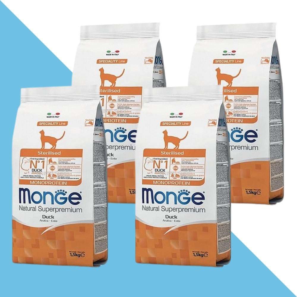 4 שקי Monge Sterilised Duck – מזון לחתולים מסורסים/מעוקרות 1.5 ק"ג כל שק