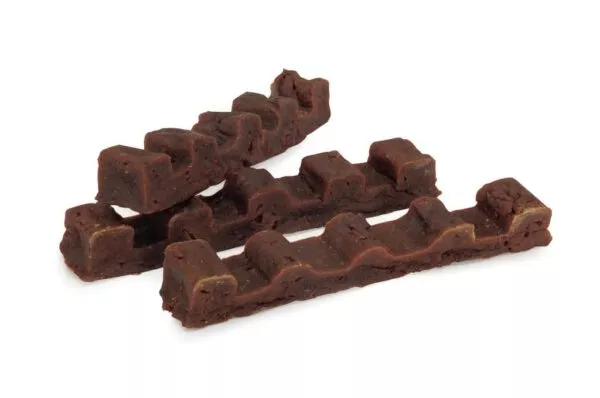 חטיף לכלבים טעים במיוחד, בצורת אצבעות שוקולד בטעם סלמון