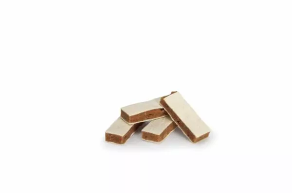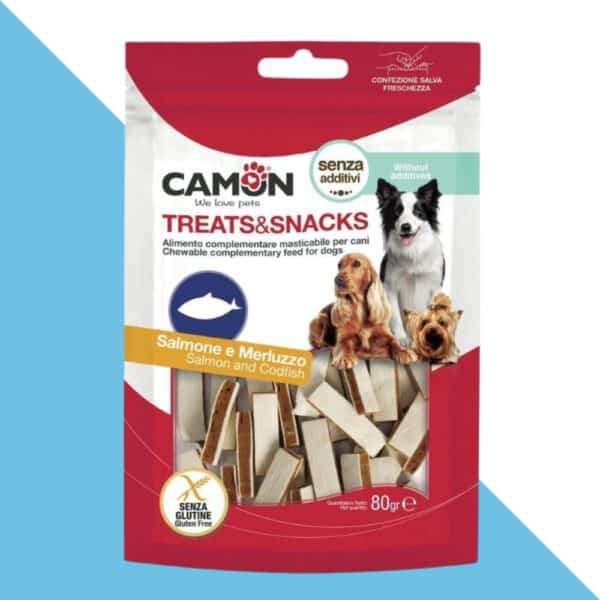 חטיף לכלבים טעים במיוחד בצורת סנדוויץ' בטעם של דג בקלה וסלמון.