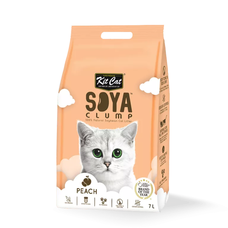 Kit Cat SOYA CLUMP הוא 100% חול חתולים מתכלה על בסיס סויה עם ארומה עדינה. מוצר ייחודי זה עשוי מהחלקים הבלתי מסיסים של פולי סויה הנמצאים בייצור חלב סויה. בדרך כלל החלקים הבלתי מסיסים הללו מושלכים בעיקר למזבלה, אך Kit Cat מחדשת מטרה שנייה לחומר ה"מבוזבז" הזה כדי לשמש כחול חתולים, ומציינת אותו כידידותית לסביבה
