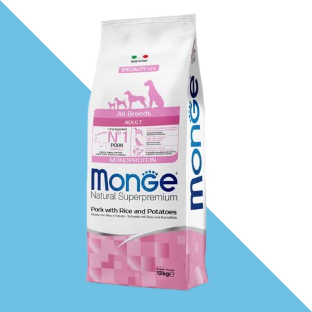 מזון סופר פרימיום יבש מלא של מונג׳ לכלבים בוגרים מכל הגזעים – עשיר בבשר חזיר