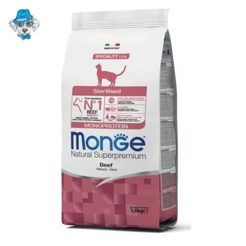 עמוד הבית / חנות החתולים / אוכל לחתולים / monge- מונג' סטרילייזד בקר לחתולים מסורסים ורגישים 1.5 ק"ג